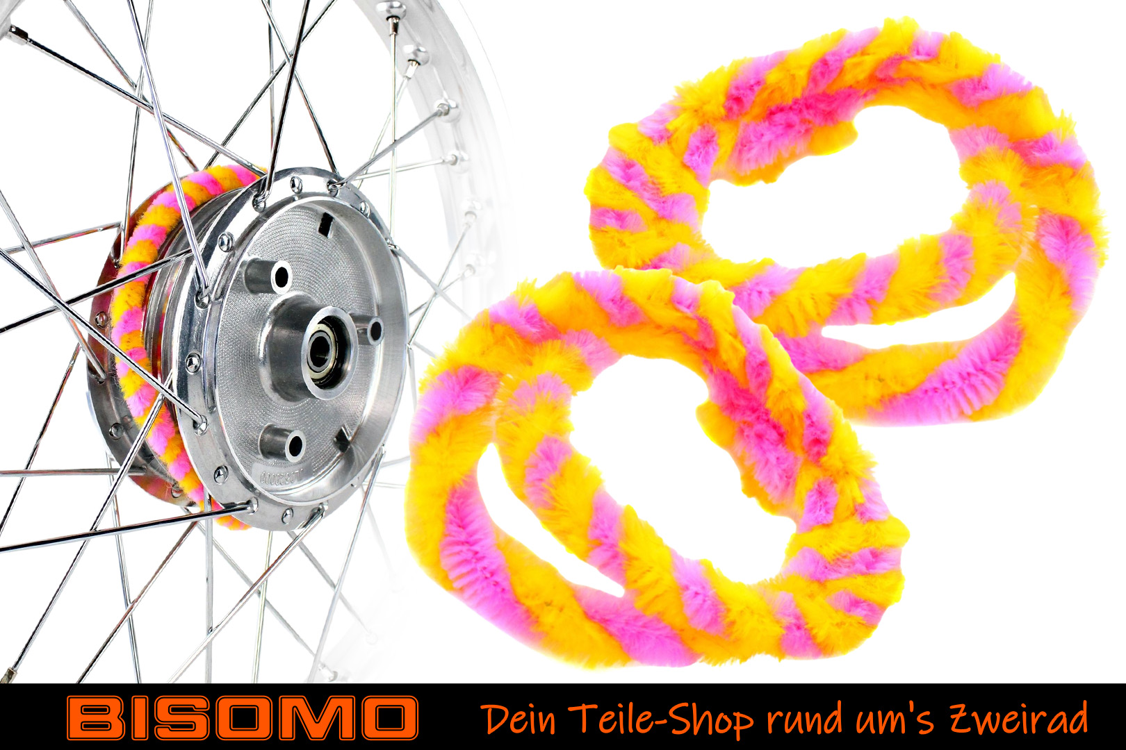 Nabenputzringe 2x 56cm Rosa Gelb Moped Simson S50 KR51 E-Bike Fahrrad Putzringe