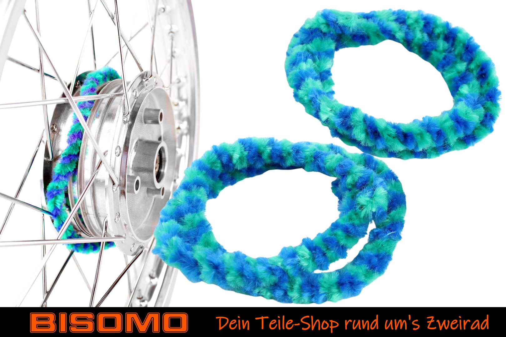 Nabenputzringe 2x 56cm Blau Grün Moped Simson S50 KR51 E-Bike Fahrrad Putzringe