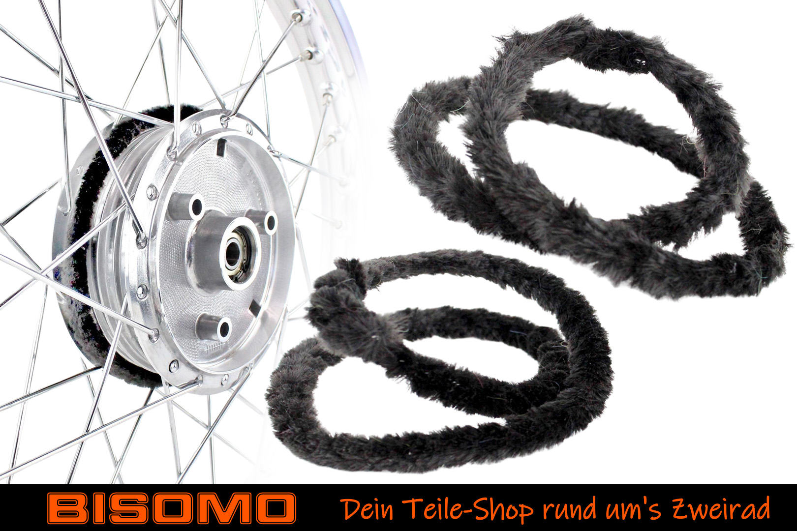 2x Nabenputzringe 76cm Schwarz Moped Simson S50 KR51 E-Bike Fahrrad Putzringe