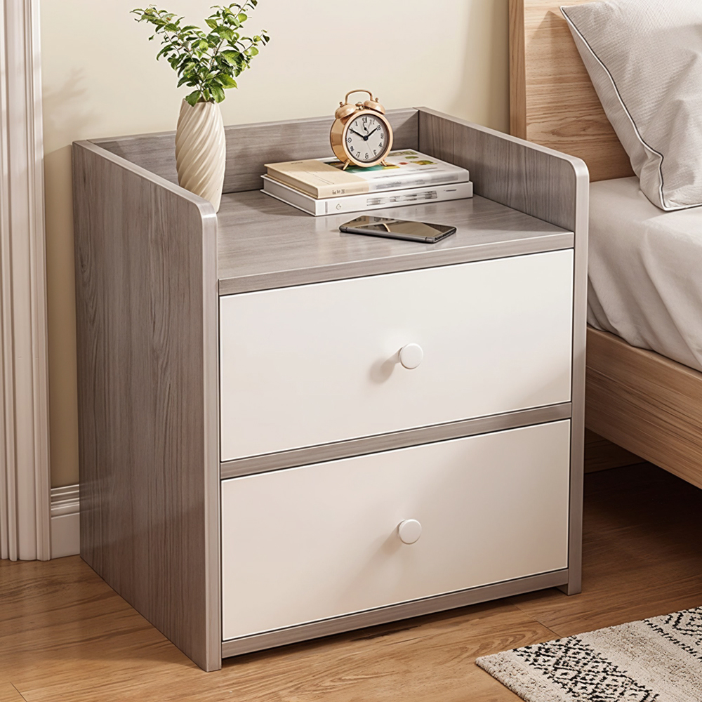 Featuring a chic light gray wood-grain finish combined with crisp white drawers, this nightstand embodies contemporary elegance. Its minimalist silhouette seamlessly integrates into diverse decor styles, from urban modern to cozy farmhouse. Each drawer is adorned with a smooth white knob, ensuring easy access while adding a subtle decorative touch. Plus, the open top shelf offers a perfect spot for your lamp, phone, or a stack of bedtime reads.