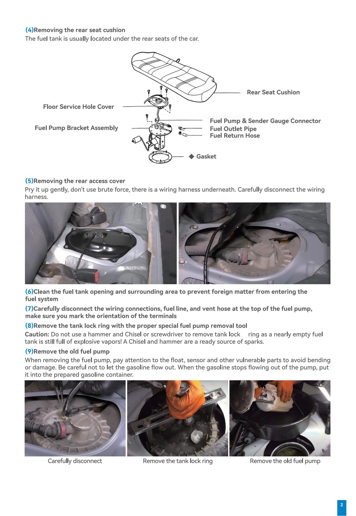 - Install the new fuel pump assembly in the tank, ensuring the strainer is properly positioned.