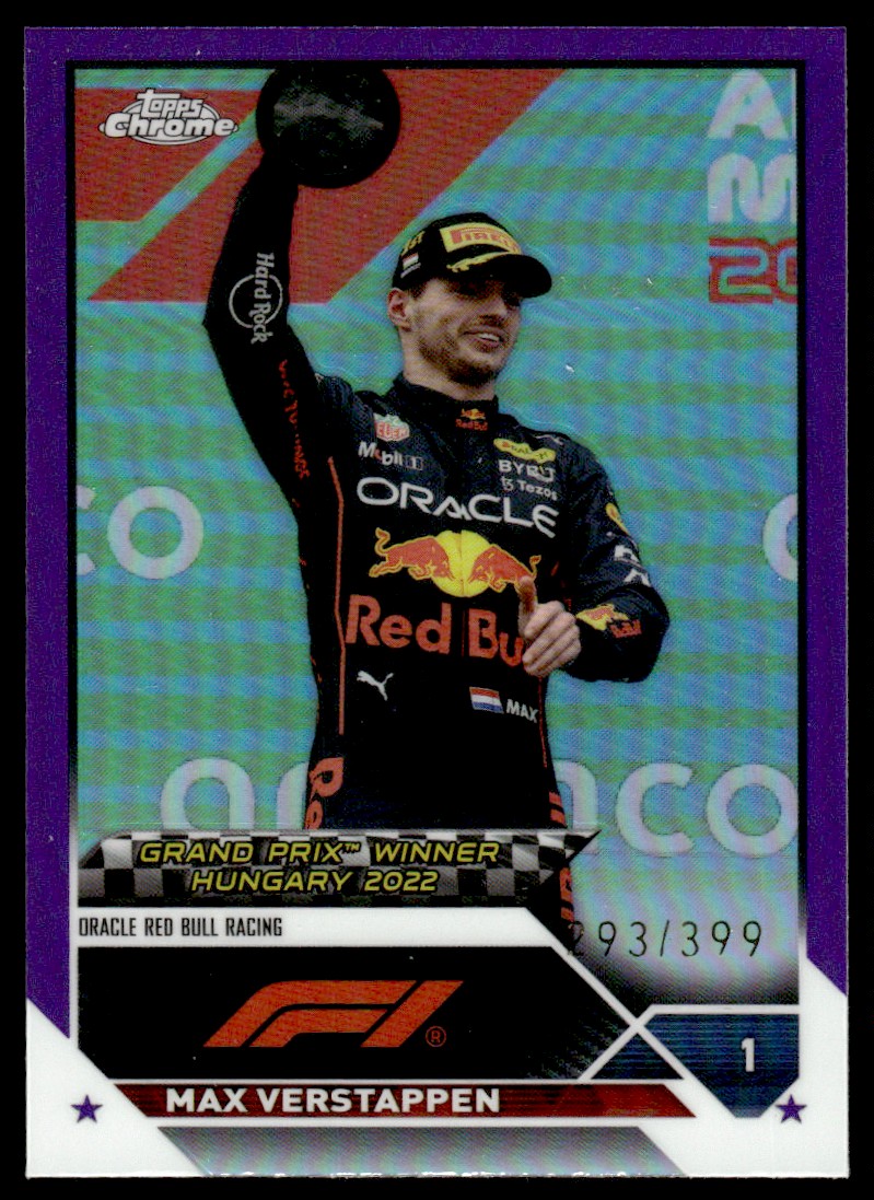 | 2023 Topps Chrome Formula 1 Purple Refractor Max Verstappen 93/399 Oracle Red |