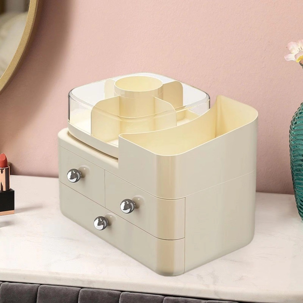 Kosmetikvitrine der Cream-Serie, 360° drehbar, Aufbewahrungsbox für Reise