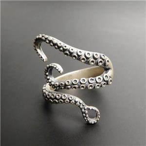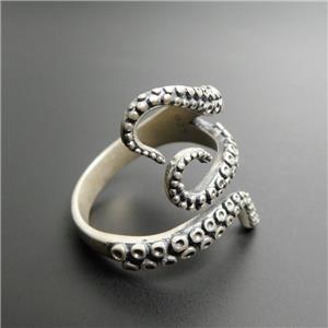 Handmade Unique 925 Sterling Silver Octopus Tentacle Wrap Ring Size Adjustable Add character to your look with this handmade sterling silver octopus tentacle ring! Amazing details of the small suckers! The surface is slightly brushed and oxidized to create depth and texture. Unique gothic accessory perfect for everyday wear or extra fun to your outfit!