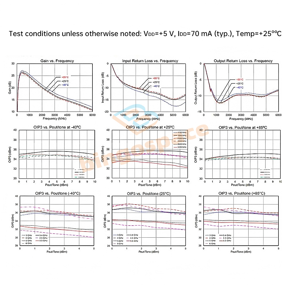 3. High gain and linearity: Provides 20dB gain and output IP3 up to +35dBm to ensure signal quality and strength.