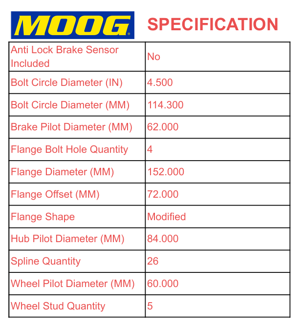 New Moog Rear Wheel Hub and Bearing Assembly