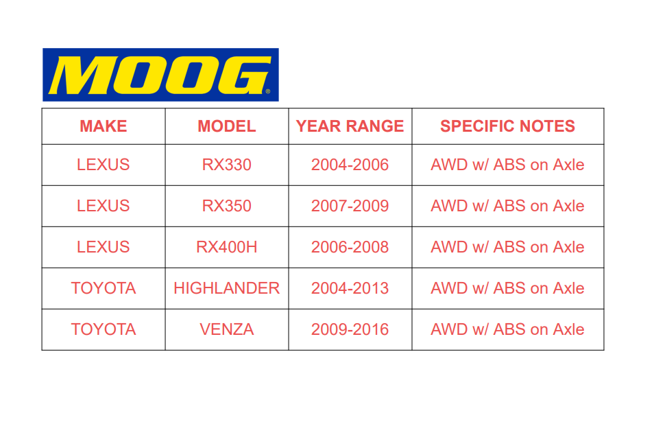 AWD MOOG Rear Wheel Bearing Hub Assembly For Lexus RX330 RX350 RX400h 5Lugs