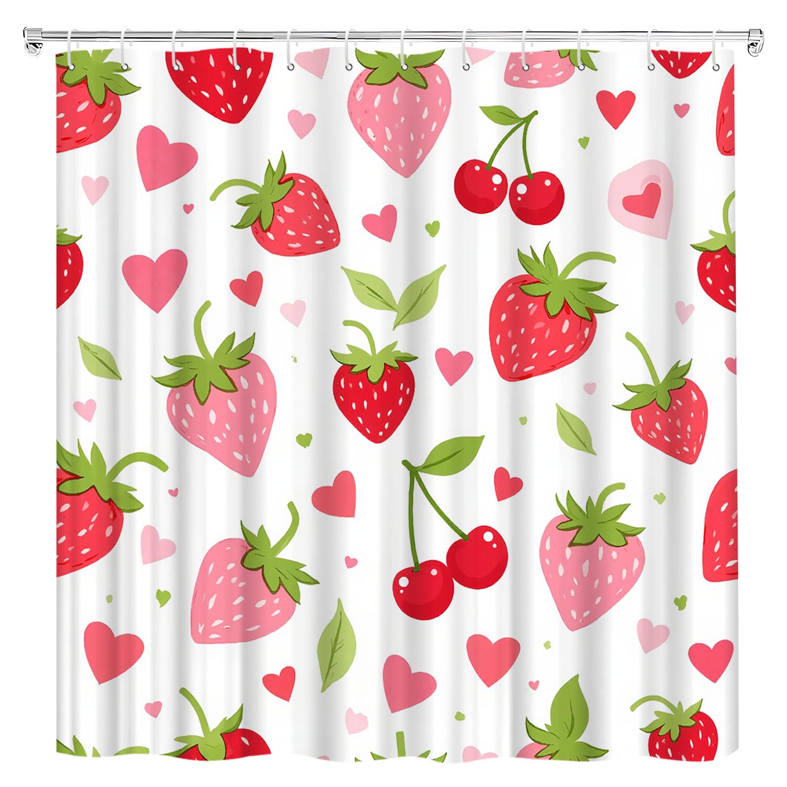 Strawberry Cherry Shower Curtain Tropical Summer Fruit Pink Cute Sweet Fruits Funky Green Leaves Aesthetic Modern Fashion Girls for Bathroom,Standard Size Shower Curtain : 59 x 71 Inch (150 x 180 centimeter).70 x 70 Inch (180 x 180 centimeter).70 x 80 Inch (180 x 200 centimeter).70 x 90 Inch (180 x 230 centimeter).Committed to manufacturing stylish and unique attractive design.Made of soft polyester fabric. Focus to product comfortable and warmth decoration, let you feel the nature and enjoy free life when you bathing.Keep the bathroom neat and clean.Comes with C-shaped ring, you can easy to install onto the shower curtain rod.Easy to Wash:Hand wash or machine wash with cold water, hang to dry, do not bleach.