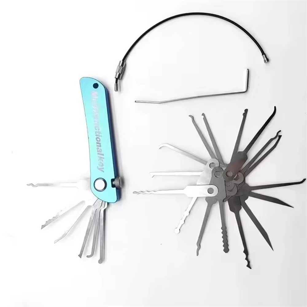 21 in 1 lock picking set with super compact size, ideal for the beginners and professionals to practice lock picking and improve skills. Ideal for the beginners and professionals.