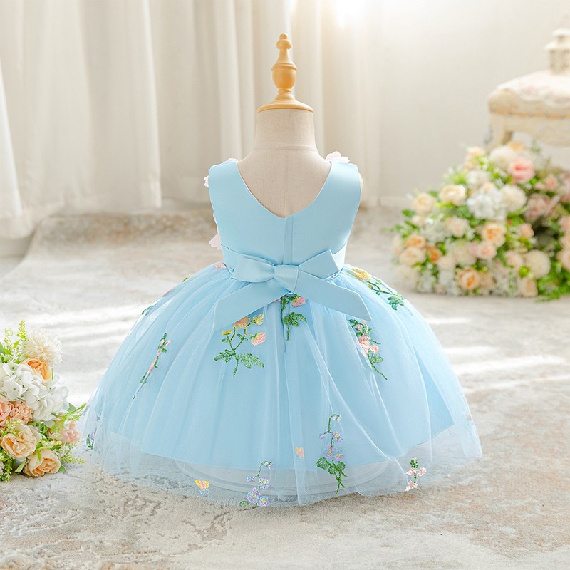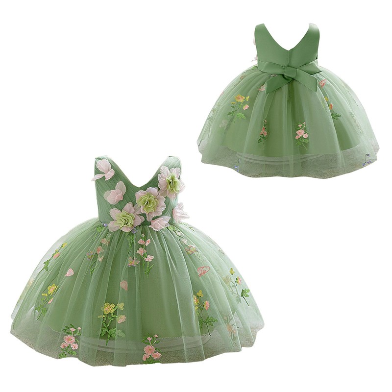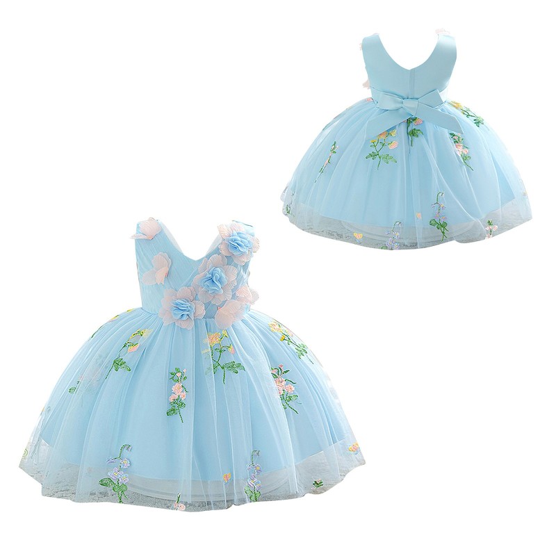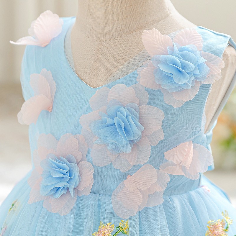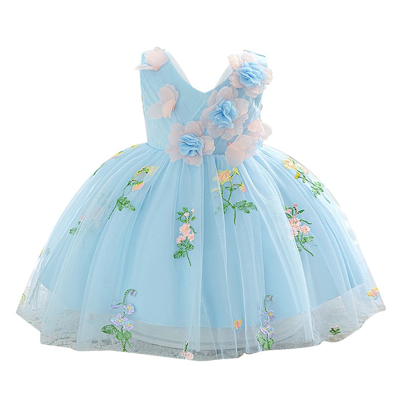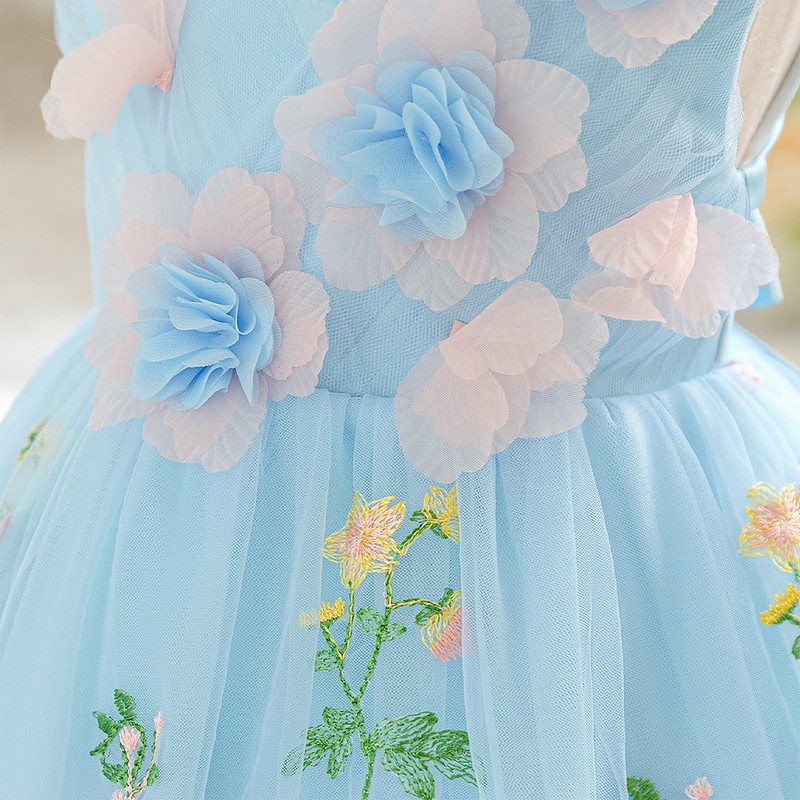 The 3D flowers and embroidery adds a touch of sweetness and cuteness, creating a princess-like look that is very popular among little girls.