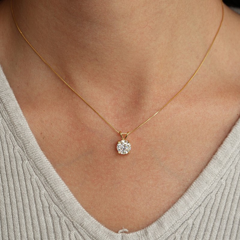 1.0 Ct Round Brilliant Cut GRA Moissanite Pendant 16+2 14k Yellow Gold NEW