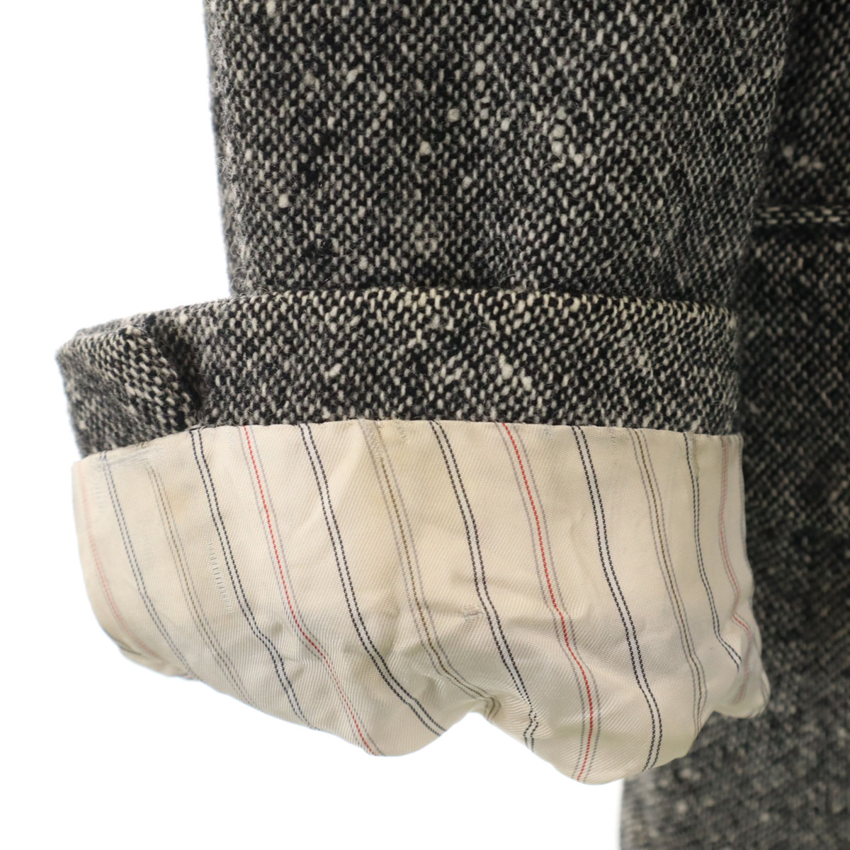 | Condition | There is a name embroidered on the inside pocket. It has been hidden in the photos with masking tape. There is overall rubbed wear. There is staining around the neck, left cuff, and cuff lining, and peeling on the sides of the lining and cuff lining. Please understand that this is a used item before purchasing. |
