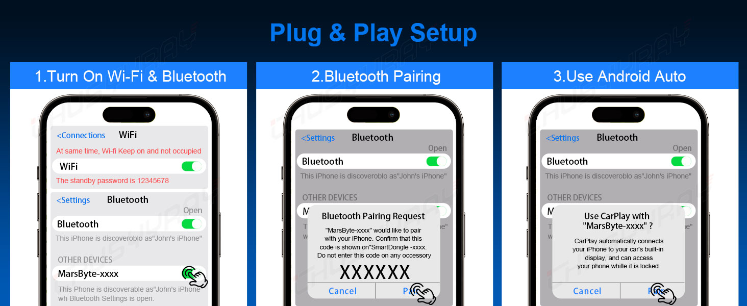 Seamless Wireless Freedom: Enjoy a clean, cable-free setup with our wireless CarPlay adapter. Simply plug it in, and it auto-connects to your (iPhone 5+) or (Android 11+). Access maps, calls, and music instantly on your car’s display-no complicated setup needed