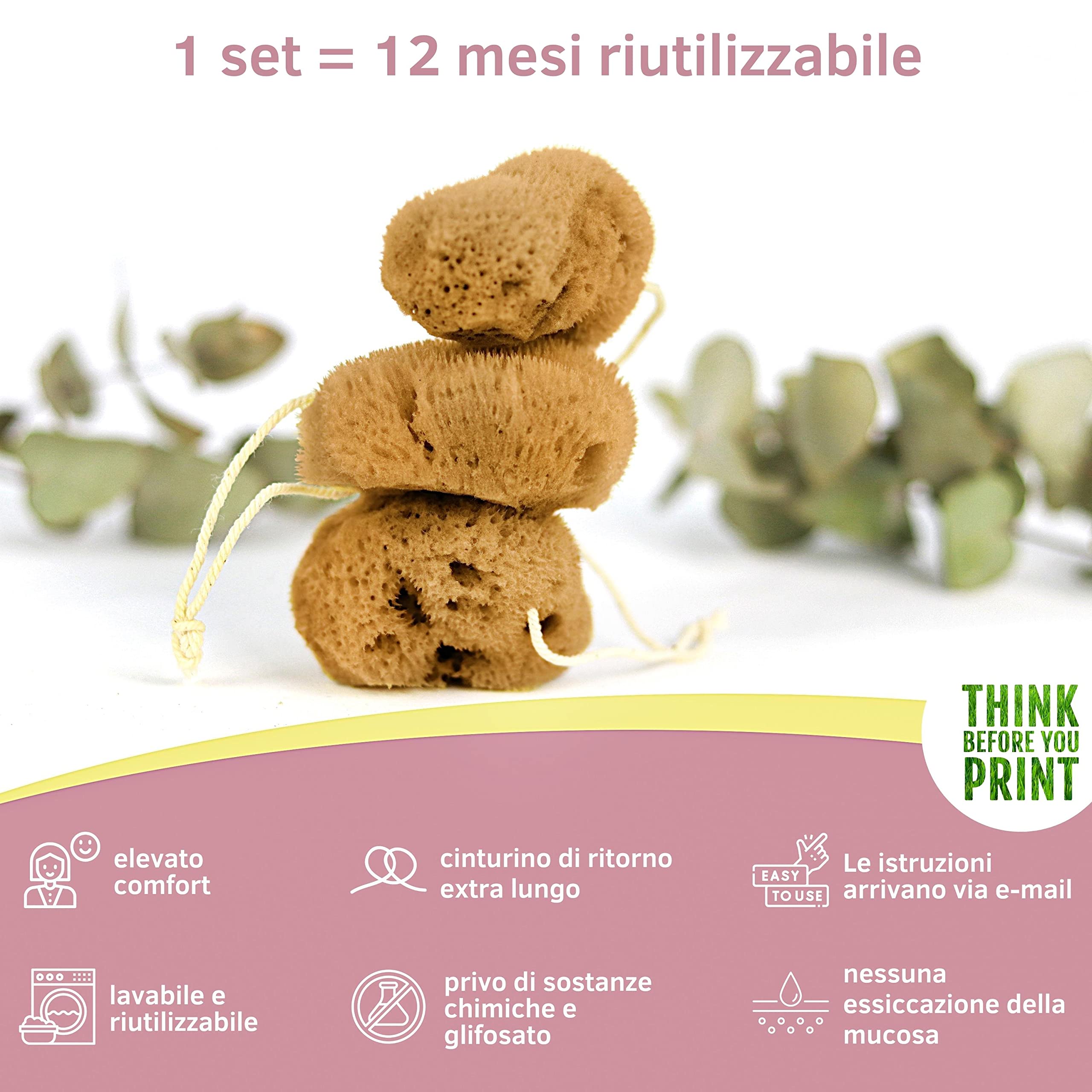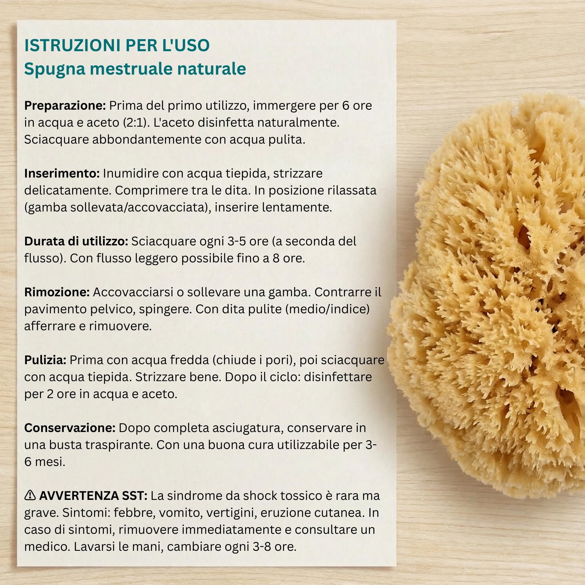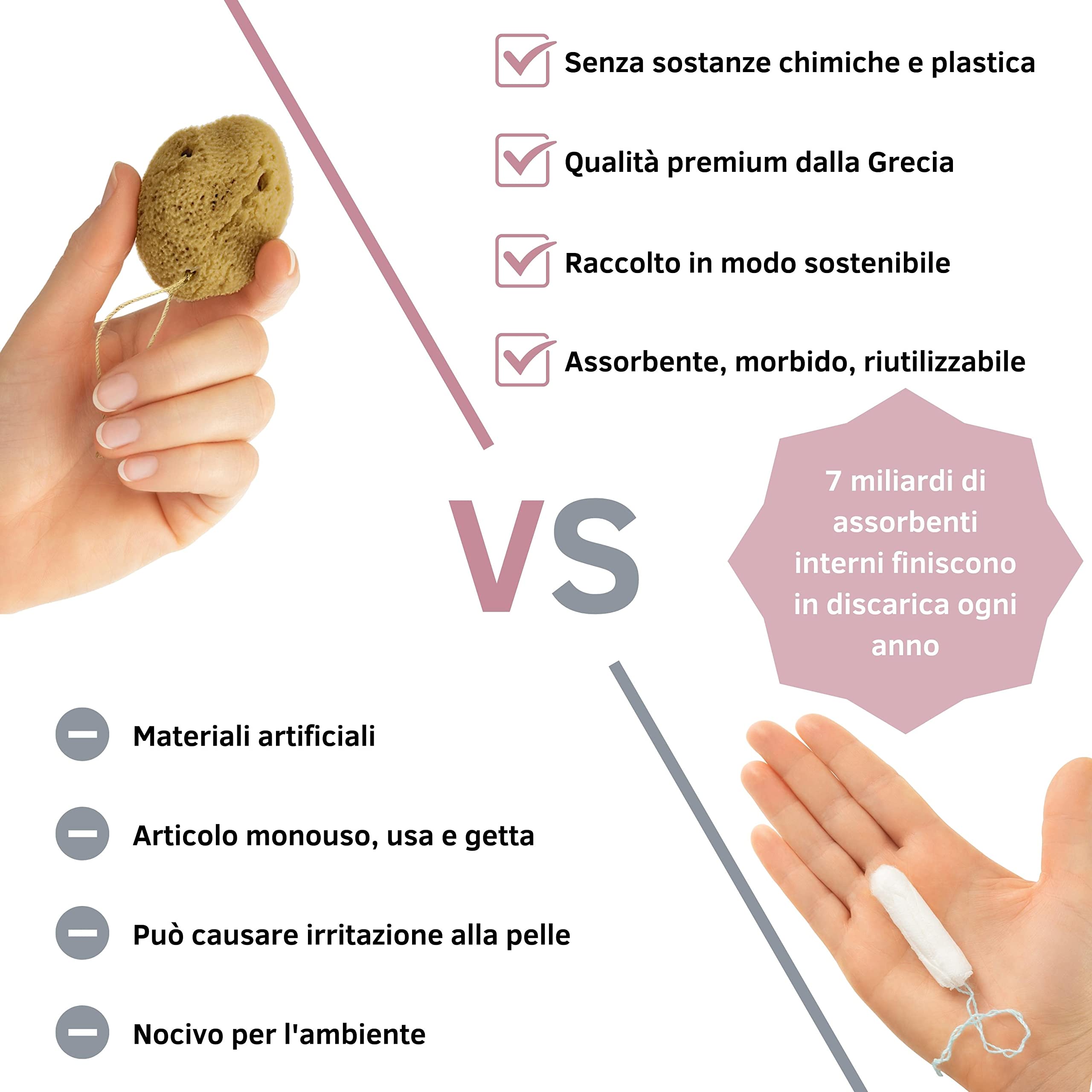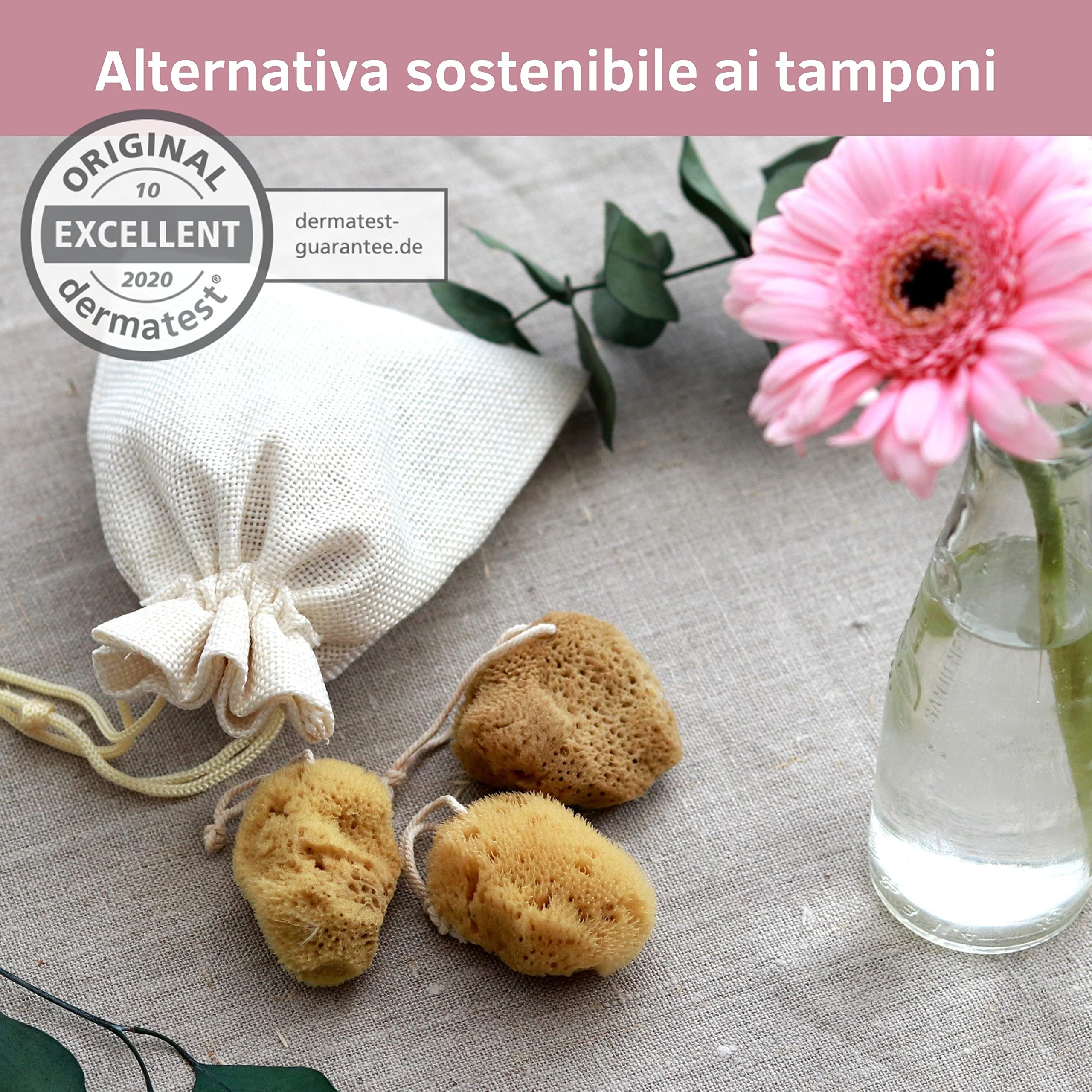 tom&pat® Spugna mestruale naturale con filo • alternativa ai tamponi • riutilizzabile e lavabile • Dermatest eccellente • contenitore per viaggio • qualità premium Grecia (Taglia S, 3 x 3-5 cm)