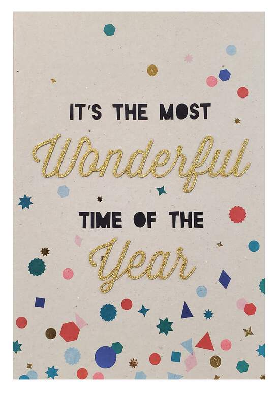 Christmas Greeting Card - Most Wonderful Time of the Year Christmas Greeting Card from our seasonal collection. Outside Message: IT'S THE MOST Wonderful TIME OF THE Year Inside Message: SEASON'S GREETINGS Envelope Included SIZE: 5″ x 7″