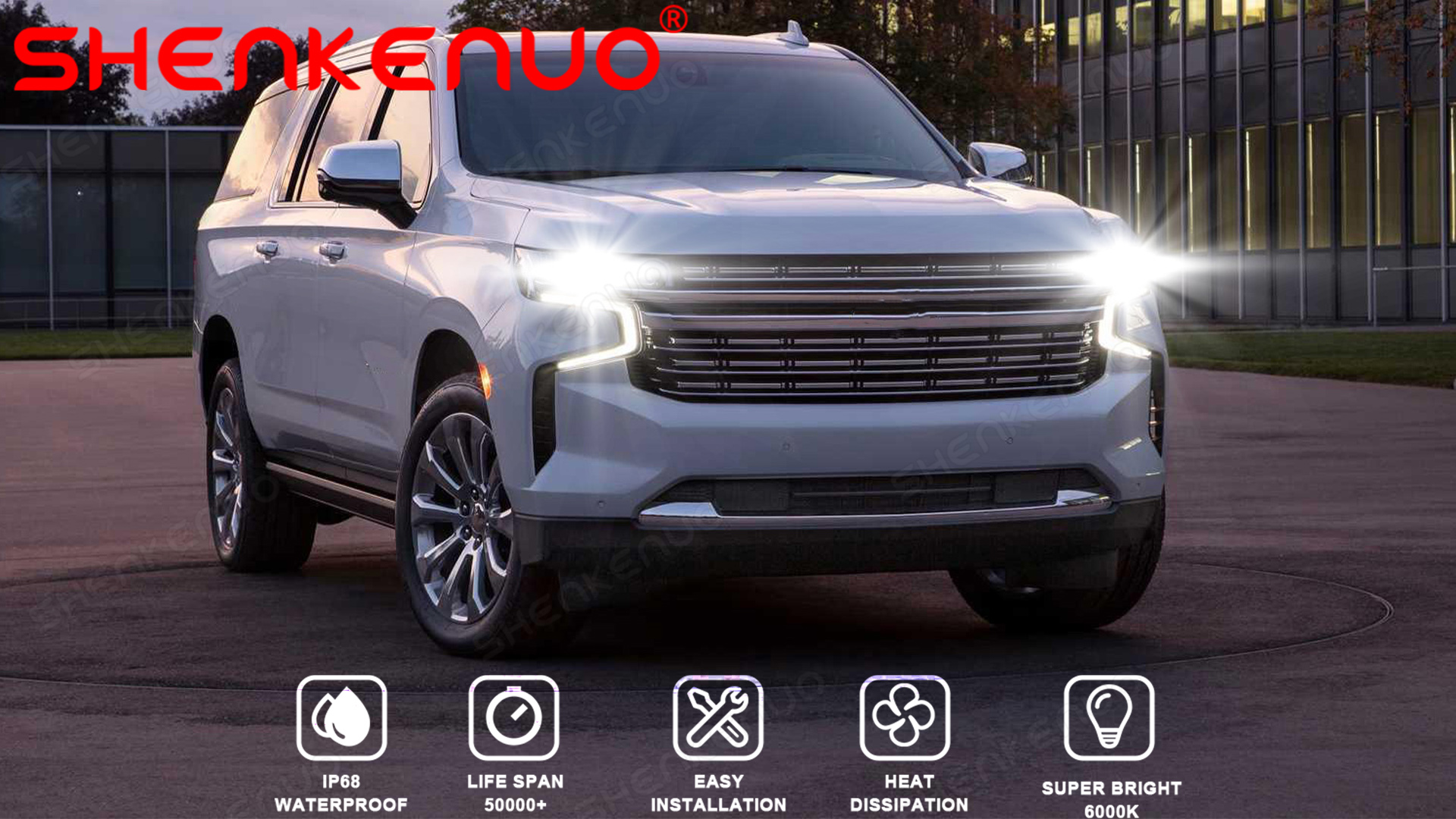 Superior LED SourceHigh performance LEDs, vibration resistant and superior illumination stability Faster on/off response time, no incandescent delay | Broaden driving vision and brightnessUltra slim design provides super focused light beam, effectively simulate the beam pattern of original halogen lamp and solve the problem of focusing unevenly, super focused and max light output provide a wider and further lighting area. No glare to oncoming traffic, and no dark spots ensure a safer drive. | Enhanced Beam PatternEquipped with improved beam pattern for optimal light shape, LED headlights focuses down the road, which contributes to seeing further and clearer at night with no dark spots, no shadow areas, no glare and no blinding to oncoming drivers | Superior DurabilityAviation aluminum construction, top LED chips ensure a longer lifespan up to 50,000 hours, excellent waterproof and dustproof performance make it your top pick for travelling even in extreme situations. |