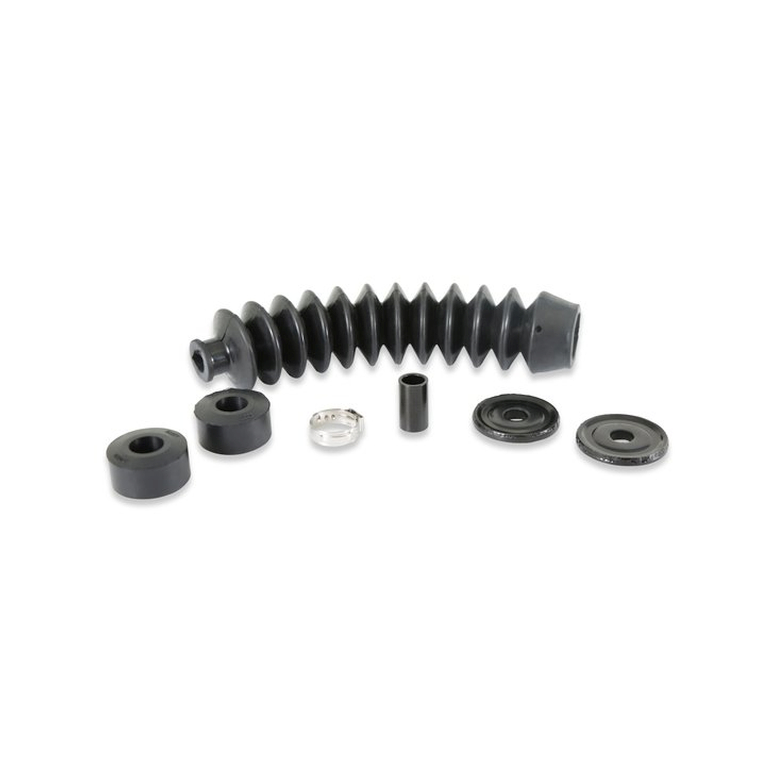 This power steering cylinder boot kit is designed to protect your steering cylinder from any dirt or dust entering your power steering slave cylinder. When your power steering slave cylinder has excessive play, this kit gets rid of the play in the power steering for a crisp, responsive feel. The kit includes new washers, a steel tube spacer, EPDM rubber boot, and EPDM rubber bushings.