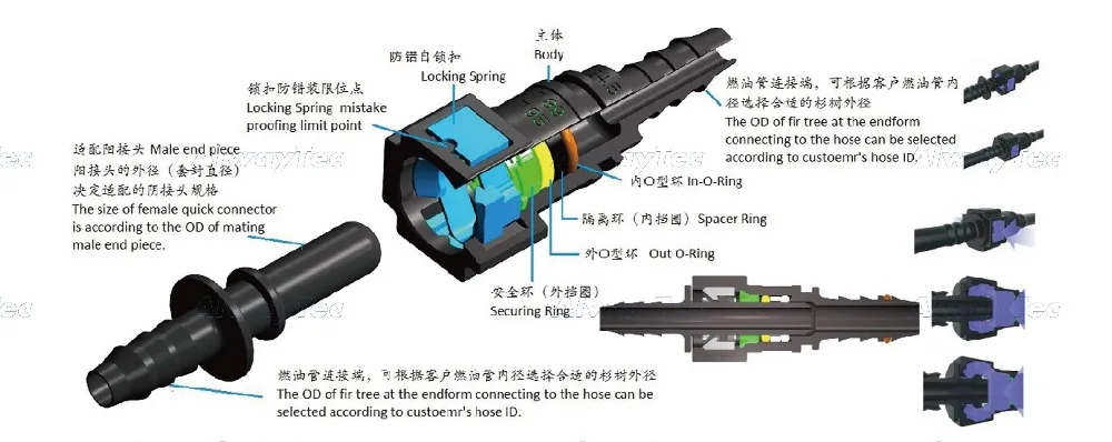 A4 6.3mm,SAE 1/4 " fuel line conenctor for automtive pipe system quick fitting