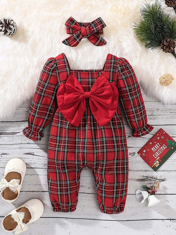 The big bowknot and plaid elements are full of Christmas atmosphere. Comes with a headband.