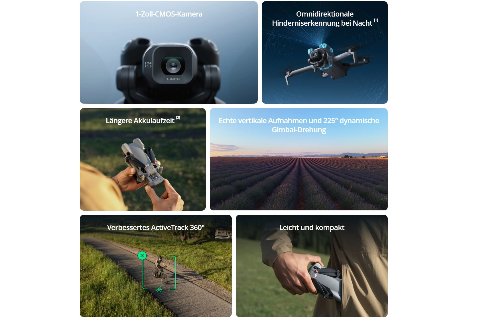 *** Gemessen in einer offenen, windstillen Testumgebung, wobei die Drohne aus einer Höhe von 0 Metern startet.