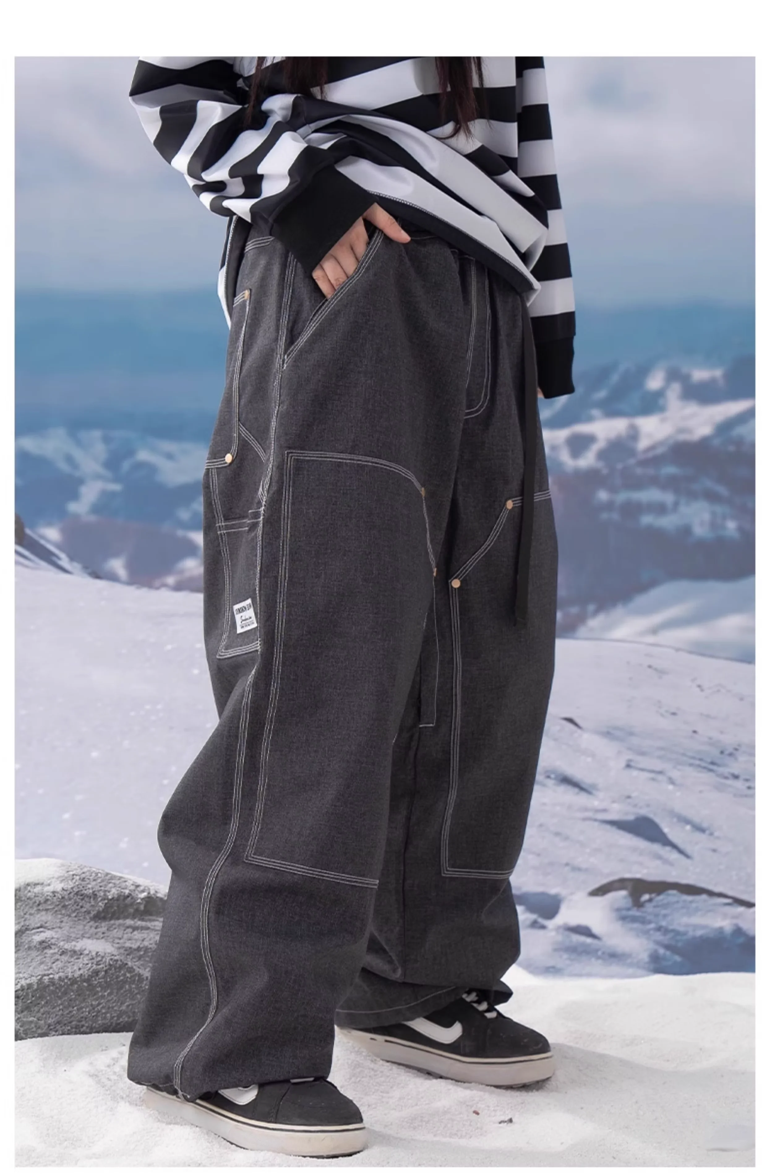 These snowboarding pants are true to size, offering a perfect fit for your snow adventures.