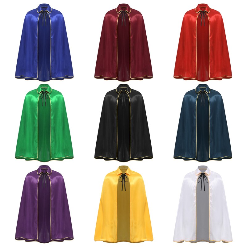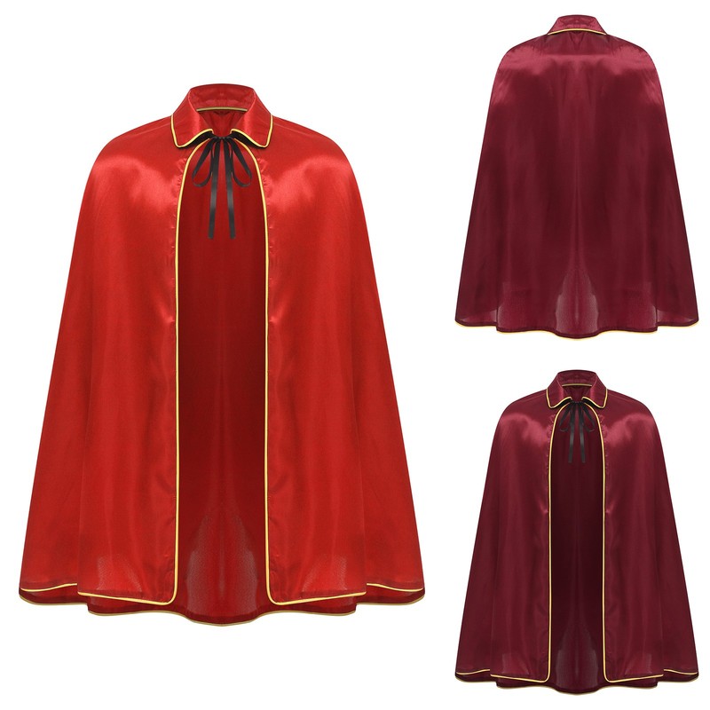 Unisex Halloween Knight Cape Shoulder Wrap Gold Trim Renaissance Viking Costume