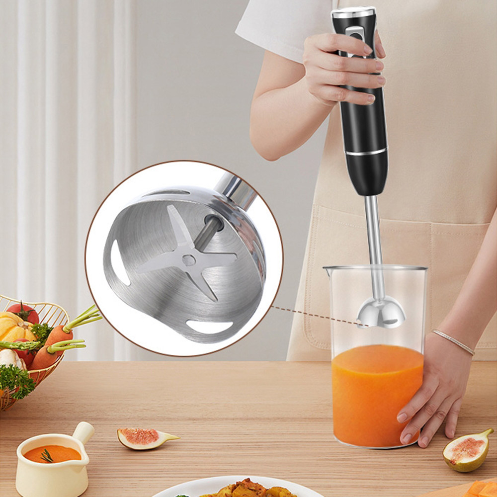 Easy To Clean & Use :The 4-in-1 electric handheld blender is simple and convenient to operate .After the trial,you can wash it directly under the faucet,and the chopping bowl can also be directly put into the dishwasher.
