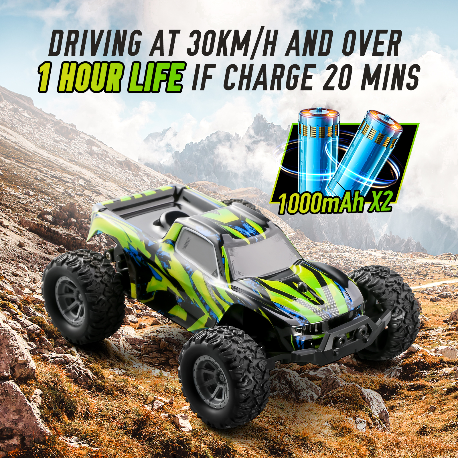 ✅4WD&2.4 GHz Remote Control: Car Speed up to 30KM/h, Lag‑free signal up to 30 m range; race multiple cars without interference.