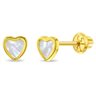 Pretty in mother of pearl! This sweet pair of small heart screw back earrings for girls are crafted entirely of 14k yellow gold and adorned with stunning mother of pearl heart. Equipped with screw backs they will stay safely all day and night to make sure your baby girl will be super comfortable wearing them. A meaningful fine jewelry gift for a loved one, packaged into their own little gift box for your convenience.