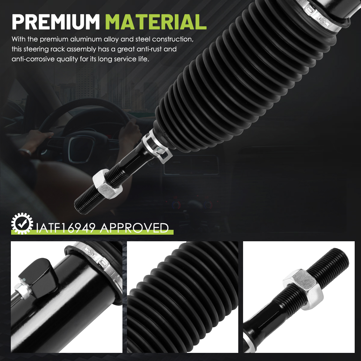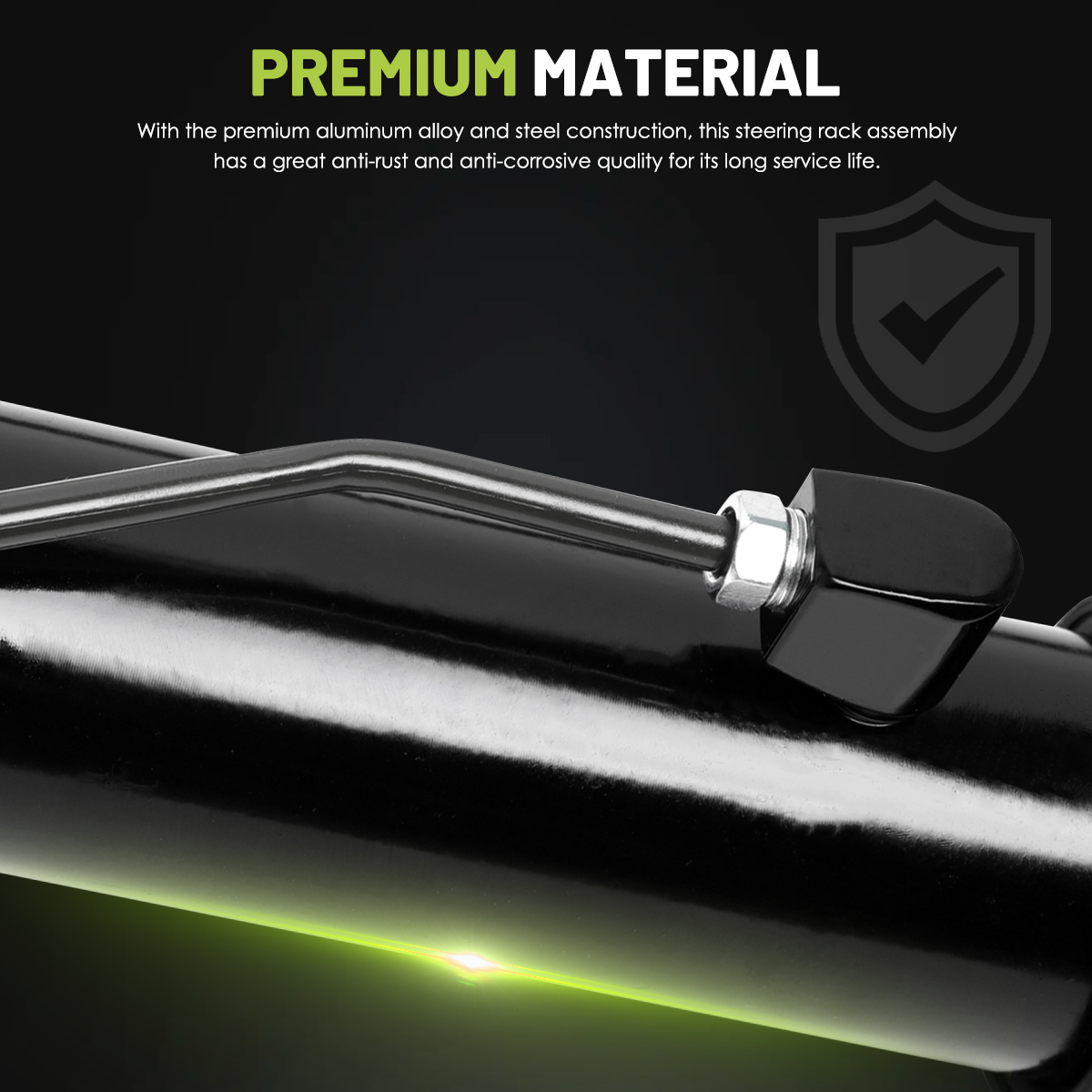 Premium Material:With the premium aluminum alloy and steel construction, this steering rack assembly has a great anti-rust and anti-corrosive quality for its long service life.