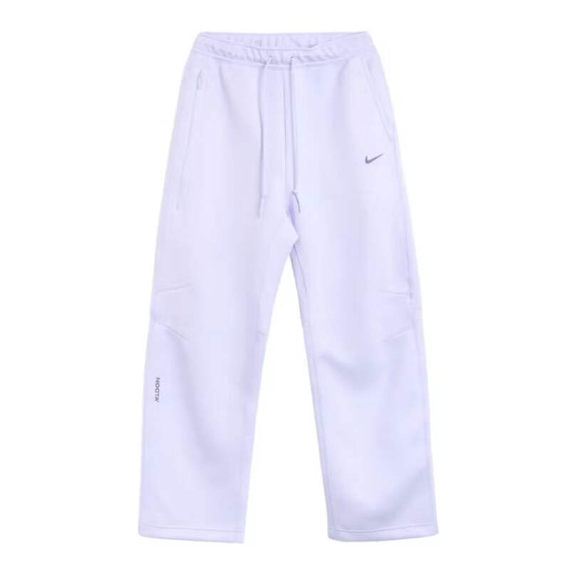 Premium tech fleece pants from the Nike x NOCTA collaboration, featuring an open hem design in the exclusive Palest Purple/Daybreak colorway. These FW24 pants combine innovative fabric technology with modern streetwear aesthetics for superior comfort and style.