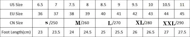 The size marked on the sole is not US size and European size, the sole size is: S, M, L, XL, XXL