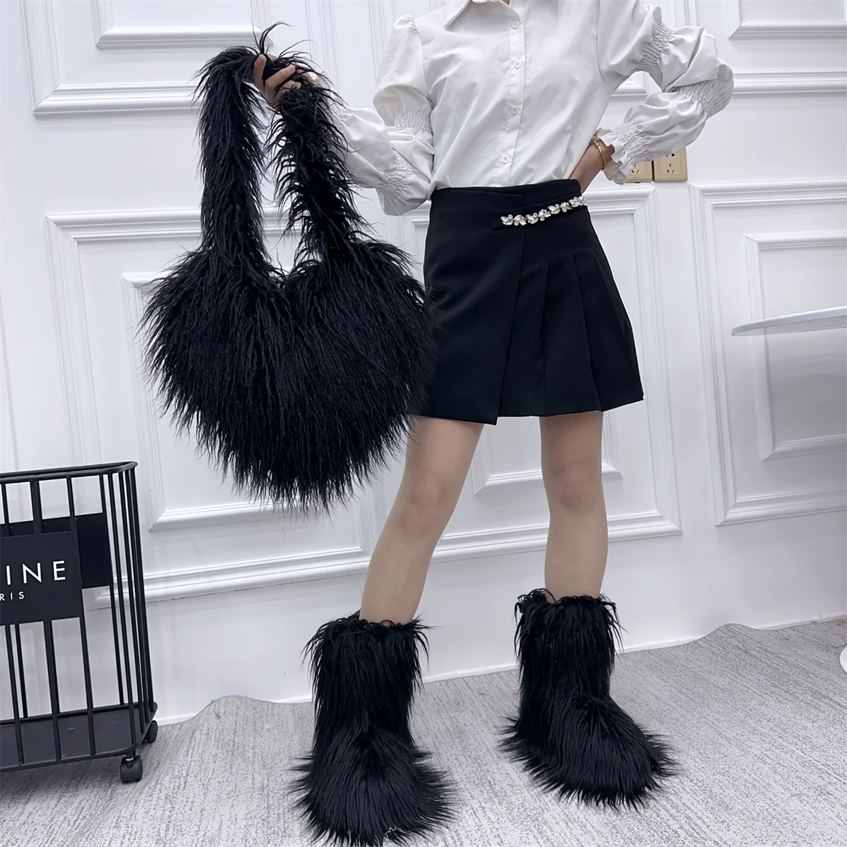 If you need a heart-shaped fluffy handbag in the same material, please click the picture below