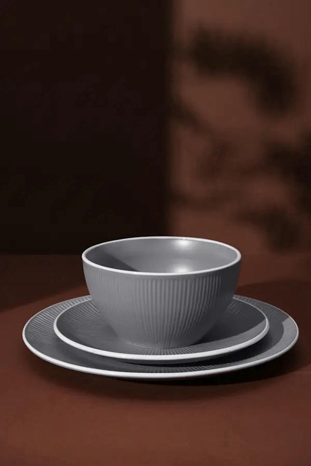 Maze Matte Glaze Ribbed Dinner Set, 12 Piece (Grey/White)