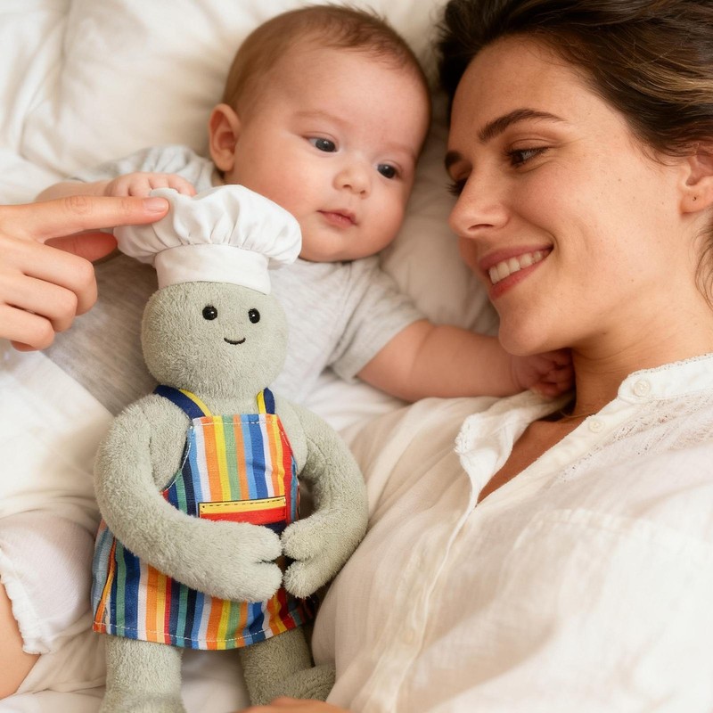 Cute Design: Plush animals with expressive faces bring joy to role-playing activities, inspiring imaginative play by letting kids explore creative storytelling with a lovable chef character during festivals or family time