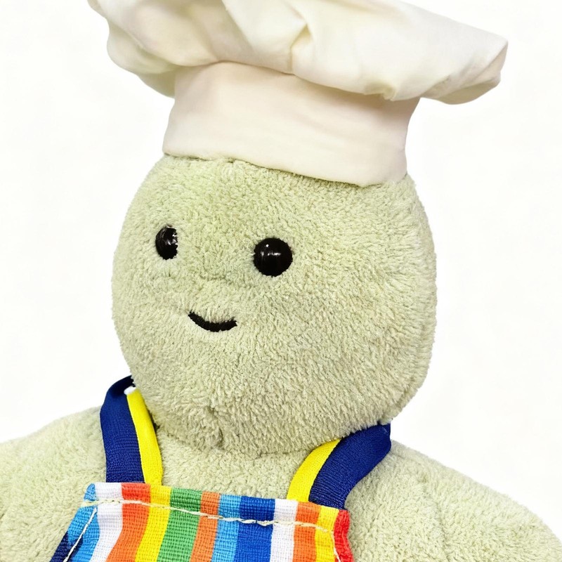This stuffed animal toy is designed in the charming form of a chef, making it both an adorable decor piece and a cuddly companion for all ages. Crafted with soft material, it offers a huggable experience while doubling as a collectible item. Ideal for placement at home, this plush toy can enhance the ambiance of your living room, bedroom, playroom, nursery, or even classroom. Its portable design makes it perfect for travel, ensuring comfort.
