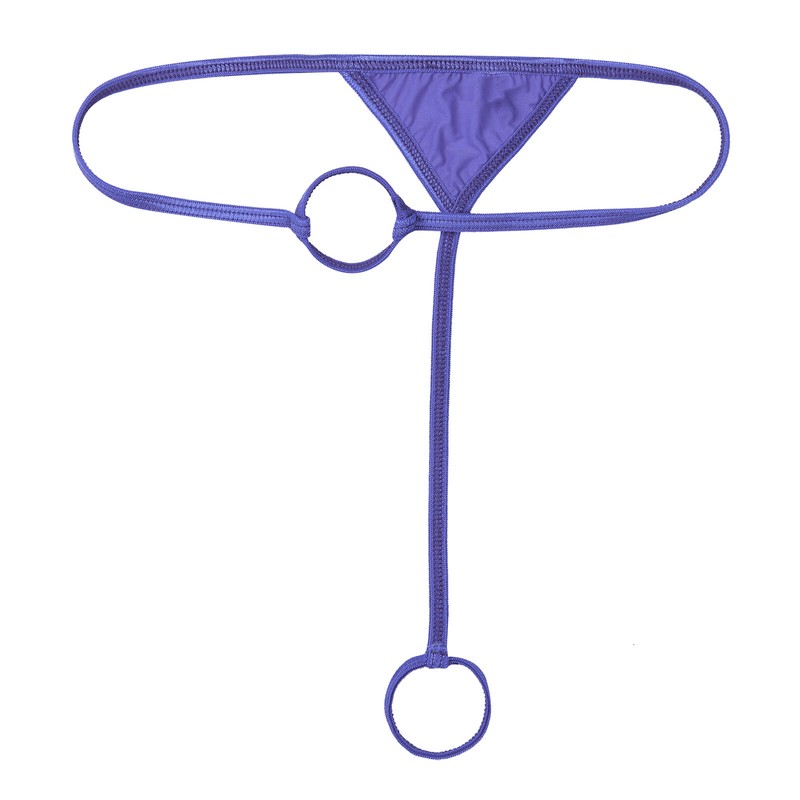 Low rise, crotchless, front with O-ring holes for a support, T-back.