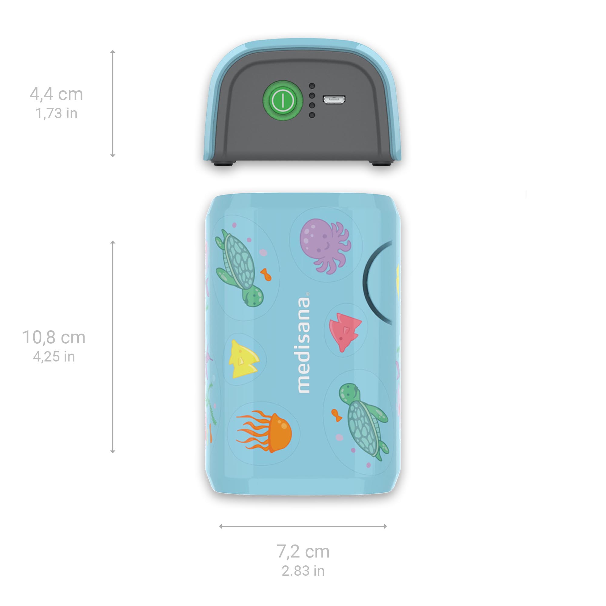 El inhalador medisana IN 165 incluye una amplia gama de accesorios para niños y adultos. La máscara con motivo para niños y pequeños permite una inhalación fácil y sencilla incluso para los más pequeños. Especialmente original, no solo para la descendencia: además de la práctica bolsa de almacenamiento, el inhalador IN 165 se puede diseñar con pegatinas y postales para colorear y personalizarlo de manera genial, para un factor de buen humor garantizado al inhalar.