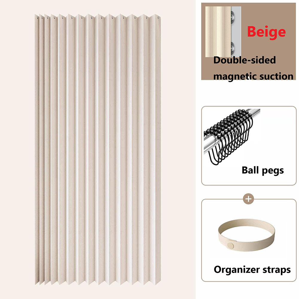 [Easy Installation and Compact Design] : The privacy bathroom divider employs a 3D hanging and folding technique that is discreet and space-saving, making setup simple and efficient.
