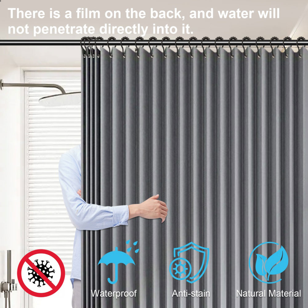 [Sturdy and Waterproof] : Made from thickened linen-like material, the bath curtain is completely opaque for full privacy. The black shower rod is crafted from high-quality stainless steel with a coated finish, making it resistant to rust and fading.