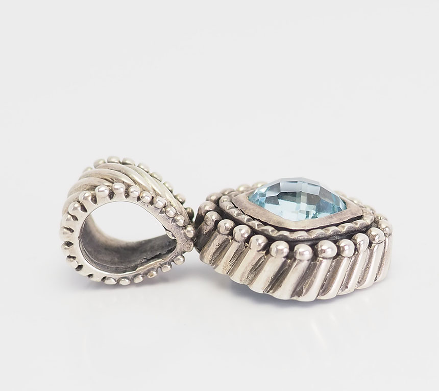 Pendente In Topazio Blu Sfaccettato In Argento Sterling 925 Di Flli Menegatti
