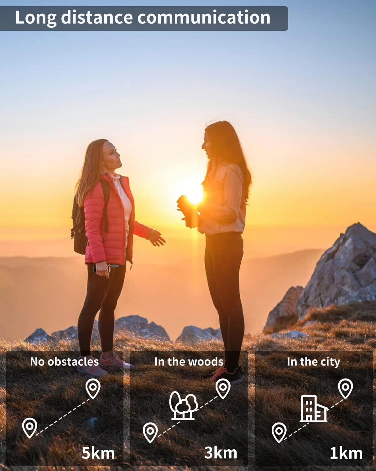 2.The range largely depends on the terrain: up to 10 kilometers, barrier-free, less in crowded areas. Very suitable for commercial buildings or around houses, suitable for security teams, maintenance teams, construction teams, fire departments, warehouses, factories, kitchen staff, hotels.