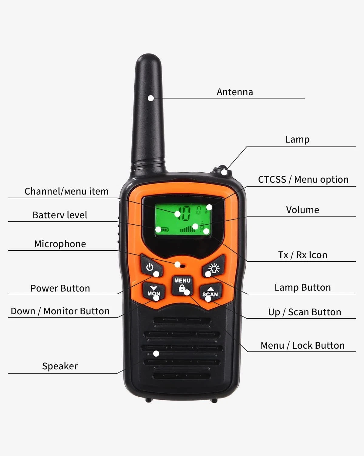 3.Wide Application: Our walkie talkie is very useful in outdoor activities such as hiking, camping and road trip. Also, kids can use it to keep in contact with their families or friends in a crowded supermarket or in an adventure.