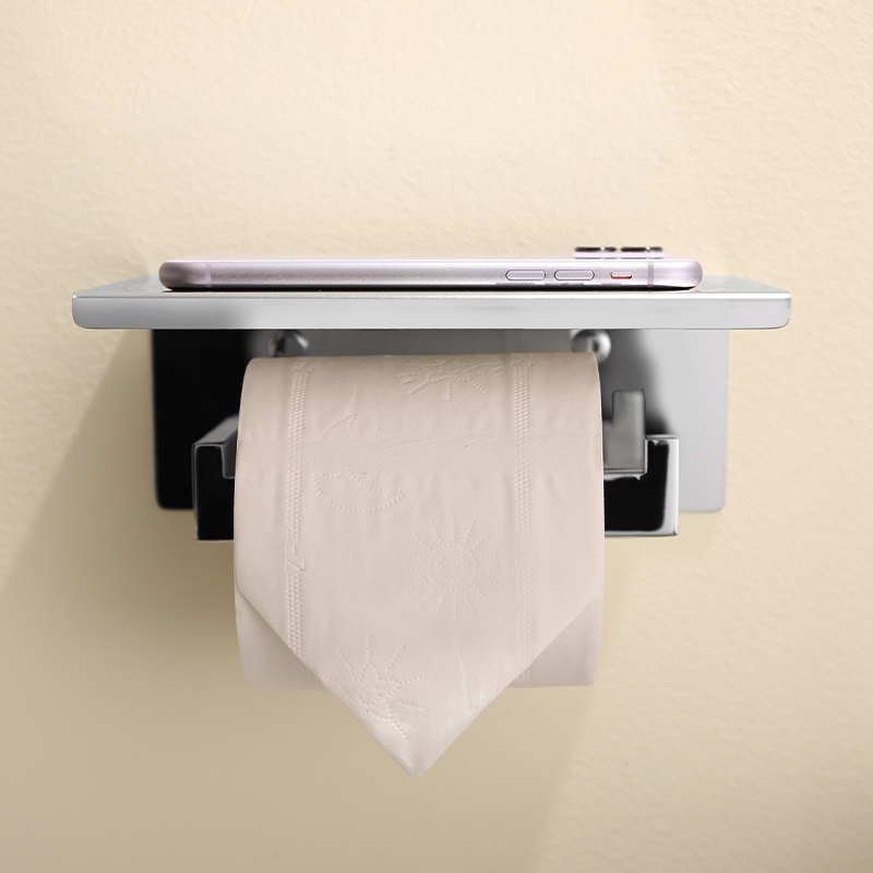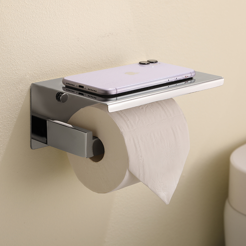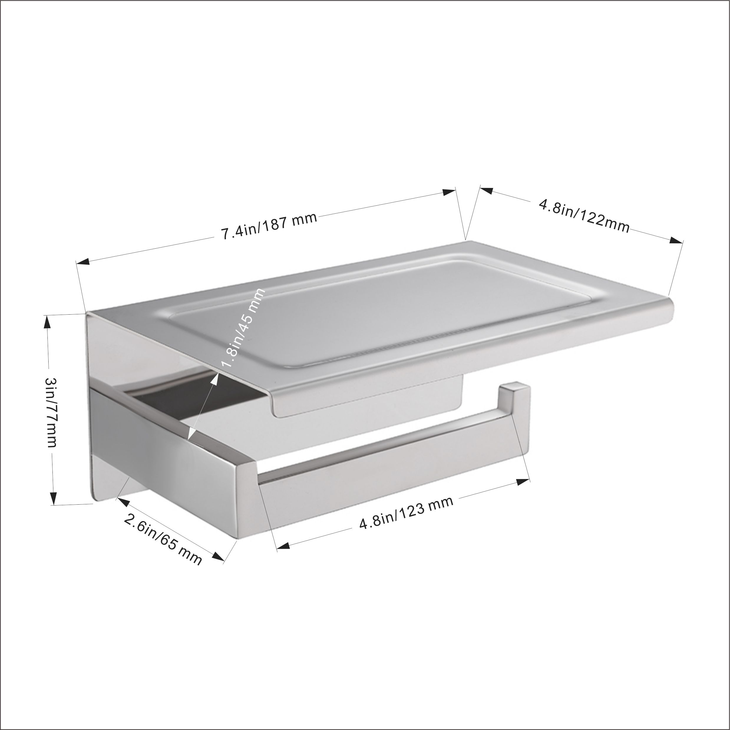 Wall Mount Toilet Paper Holder with Shelf, 304Stainless Steel, Chrome Rack