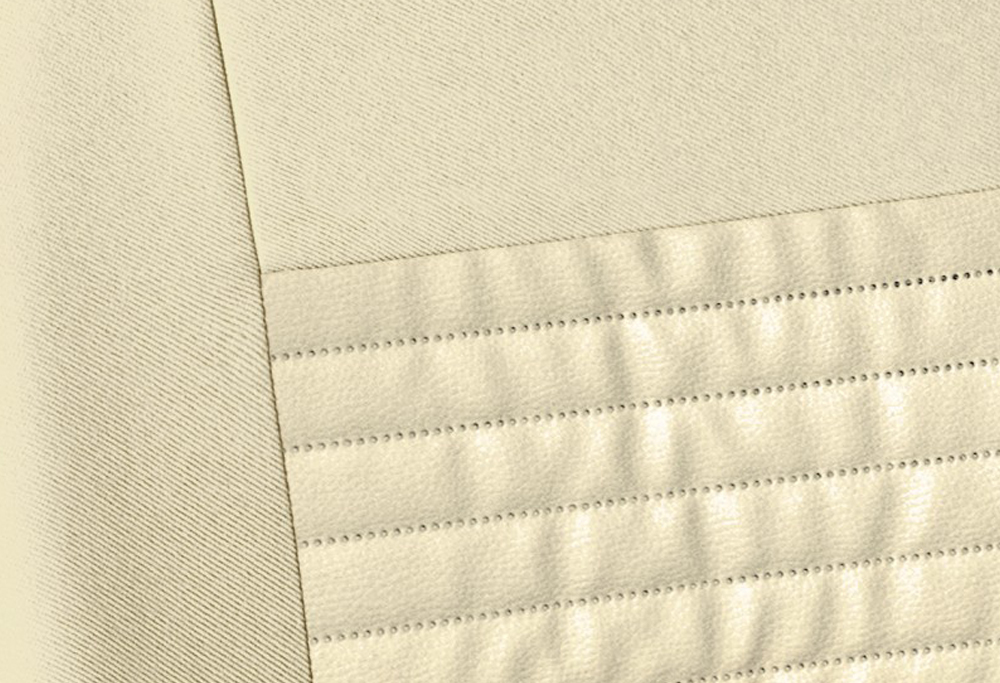 Die MODERN Sitzbezüge wurden im mittleren Bereich aus hochwertigem Kunstleder (Rückenlehne und Sitzfläche) gefertigt, das gesteppt und elegant geprägt ist.