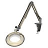 Round Magnifier Light, Arm Design Articulating, Arm Reach 43 in, Clamping Capacity 2.5 in, Color White, Color Rendering Index 80, Color Temperature 5000K, Diopter 4, Lens Diameter 6 in, Lens Material Glass, Lens Shape Round, Lighting Technology LED, Magnification 2x, Maximum Brightness 750 lm, Mount Type Clamp, Operating Voltage 100 to 240V AC, Includes Ultraviolet Light No, Arm Material Aluminum, Dimmable Yes, ESD Safe Yes, Features Internal Spring Arm