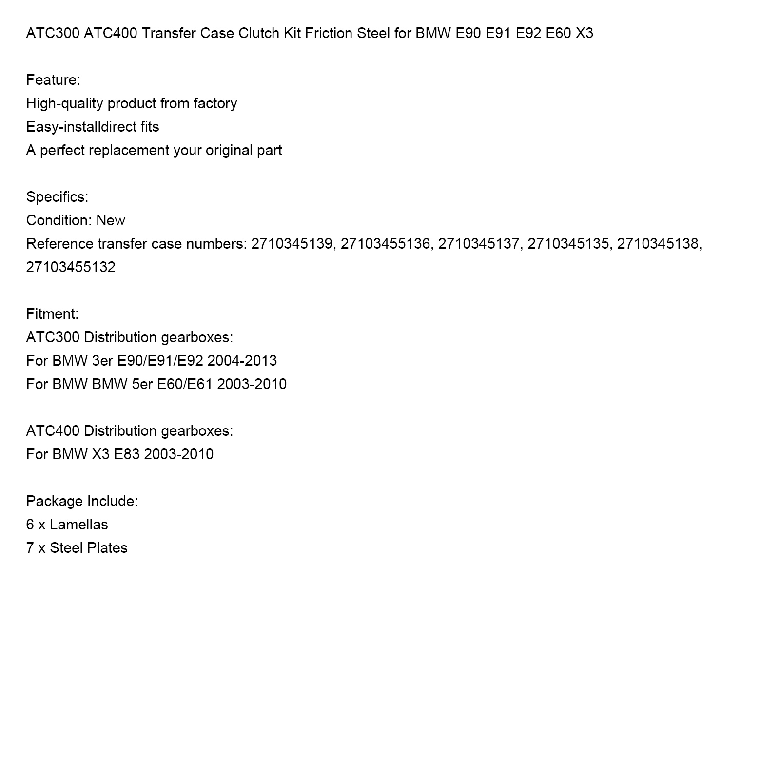 ATC300 ATC400 Transfer Case Clutch Kit Friction Steel for BMW E90 E91 E92 E60 X3