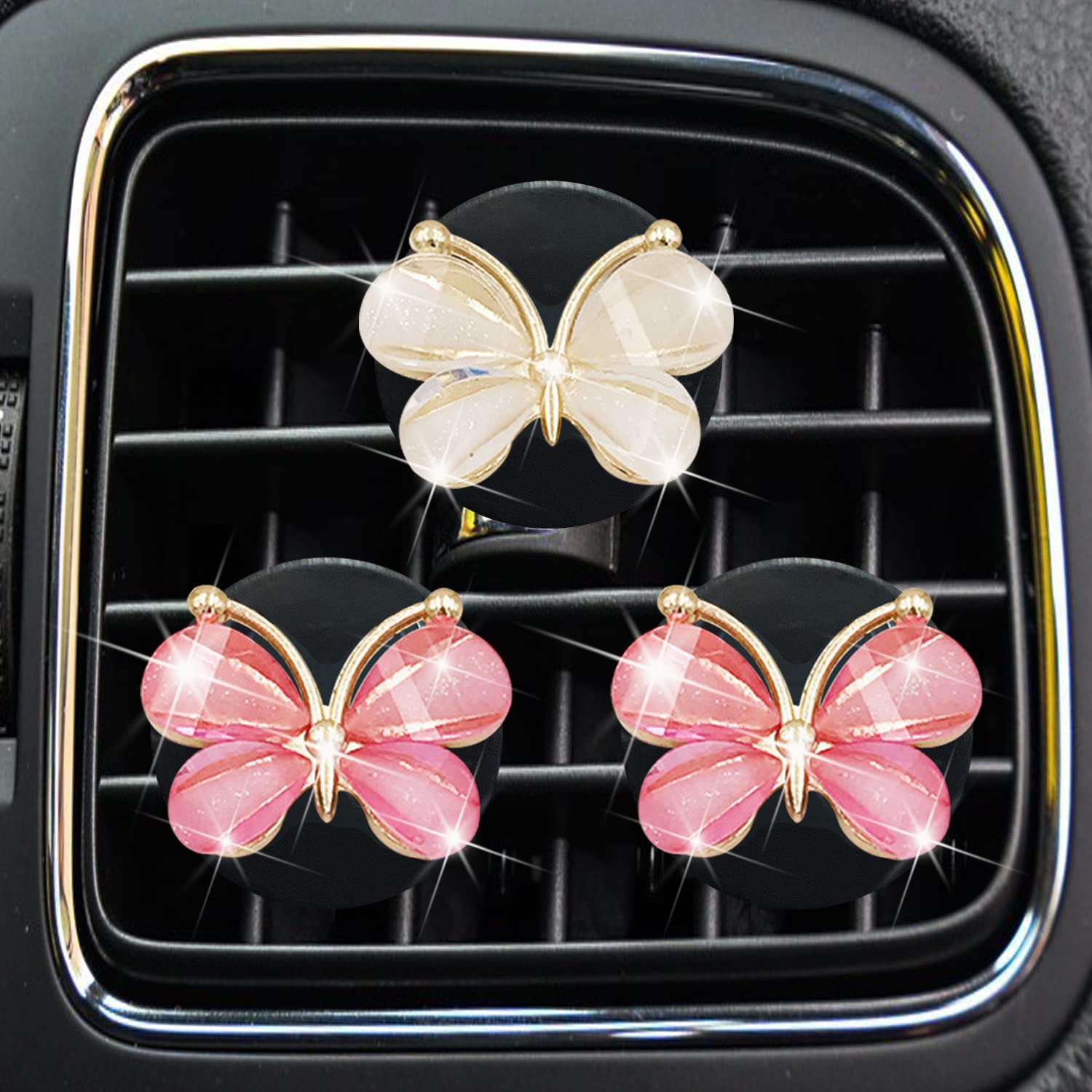 Cute Butterfly Air Vent Clips,3 Pcs Pink & White Butterfly Car Air Fresheners Vent Clips Long Lasting Car Diffuser Car Interior Decor Charm Car Decoration Cute Car Accessories for Women Girls