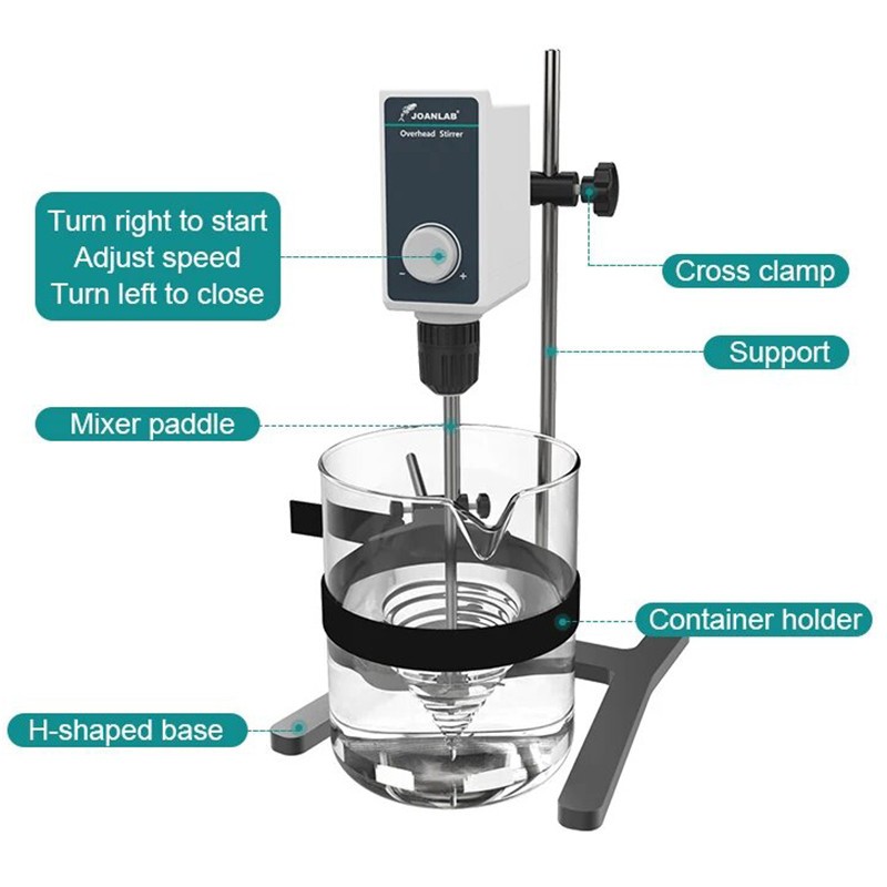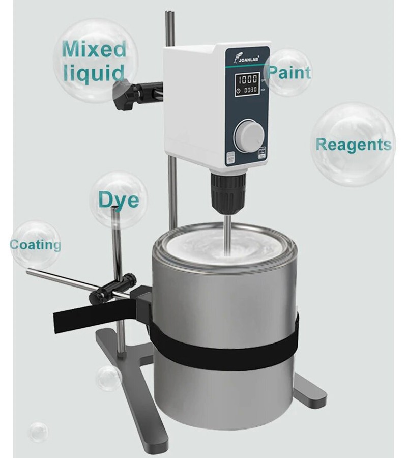 Strong stirring force, suitable for liquids of different viscosity, such as paints, dyes, reagents and other liquids