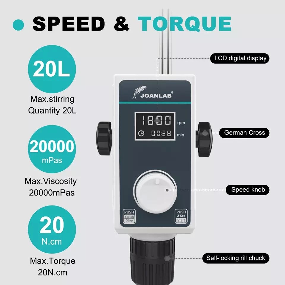 Digital Display: Equipped with a clear digital display for precise speed control up to 1500rpm.